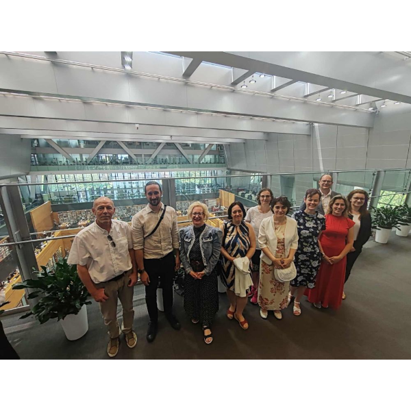 2025 nyarán egyhetes szakmai tanulmányúton vehetett részt a kínai Tiencsinben Szüts Etele, a Könyvtári Intézet igazgatója, Gerencsér Judit, az OSZK általános főigazgató-helyettese, az MKE elnöke és Takácsné Bubnó Katalin, a Könyvtártudományi Szakkönyvtár vezetője. A látogatás a Magyar Könyvtárosok Egyesülete (MKE) és a Debreceni Egyetem Konfuciusz Intézete közreműködésével valósult meg, kínai partnerük pedig a Tiencsini Idegennyelvi Egyetem (Tianjin Foreign Studies University, TFSU) volt. Nemcsak egy földrajzilag távoli ország könyvtári rendszerébe nyerhettek betekintést, hanem egy olyan kulturális közegbe is, ahol a könyvtárak kulcsszerepet játszanak a társadalom tanulási és tudásmegosztási folyamatainak alakításában.